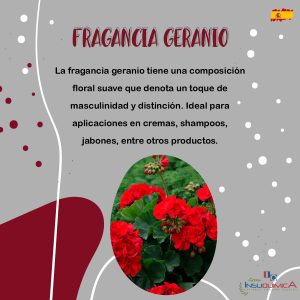 FRAGANCIA GERANIO - EMSA, es una nueva fragancia con aroma frutal que tenemos en stock, es una fragancia redonda, suave y sobre todo muy floral a las composiciones.