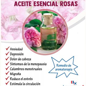 El ACEITE ESENCIAL ROSAS, Es ideal para tratamiento de Depresión, Ansiedad,Dolor de cabeza, Síntomas de la menopausia,Calambres menstruales. Etc.