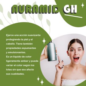 AURAMID GH - DIETANOLAMINA DE COCO - CONTRATIPO COMPERLAN, es un tensoactivo no iónico que está formada por la cadena carbónica del ácido graso de coco y dietanolamina.