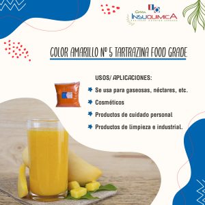 El Color Amarillo N° 5 (Tartrazina) Food Grade (Conocido como el colorante amarillo patito) es un colorante artificial altamente concentrado, ideal para la industria alimentaria, farmacéutica y cosmética. Se caracteriza por su tono amarillo vibrante y su excelente solubilidad en agua, lo que permite una distribución homogénea en diversas aplicaciones.