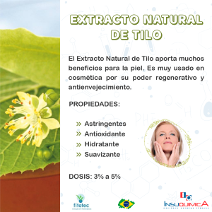 También tiene una actividad fotoprotectora para el cuidado diario, mejor la condición del cabello, mejora la circulación cutánea.EXTRACTO NATURAL TILO – FITOTEC – BRASIL – Frasco x 0.250 Kg.