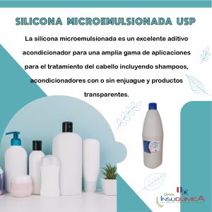 SILICONA MICROEMULSIONADA, es una emulsión de tamaño de partícula muy fino (micro) de un polímero de silicona amino funcional de alto peso molecular.