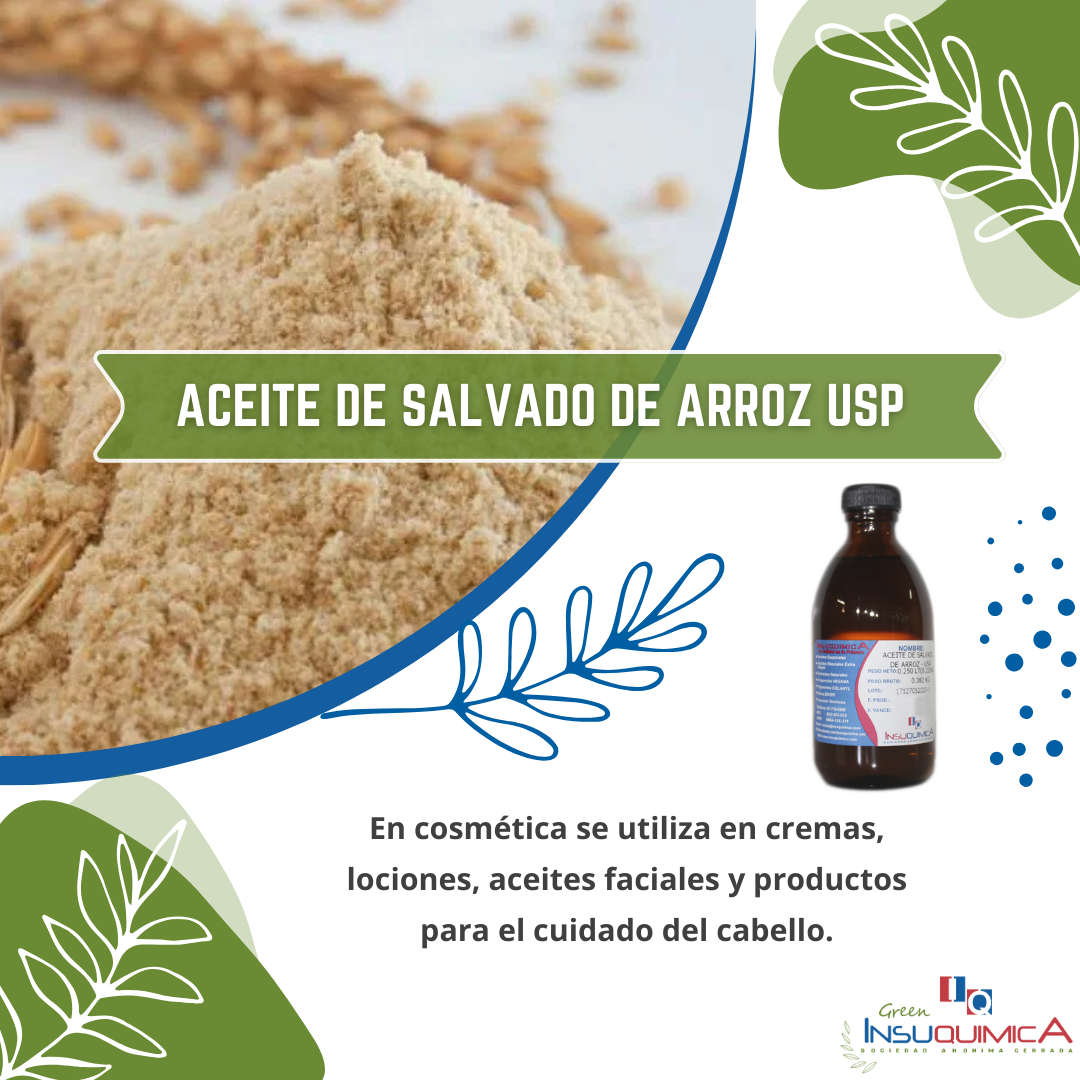 ACEITE DE SALVADO DE ARROZ USP, es fuertemente utilizado en cosmética como reparador de las arrugas y otros signos que aparecen como consecuencia del paso del tiempo. Esto es gracias a la vitamina E y a los antioxidantes que regeneran la piel siendo muy bueno en tratamientos faciales y corporales.
