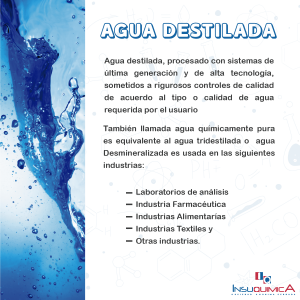 AGUA DESTILADA, es procesado con sistemas de última generación y de alta tecnología, sometidos a rigurosos controles de calidad de acuerdo al tipo o calidad de agua requerida por el usuario