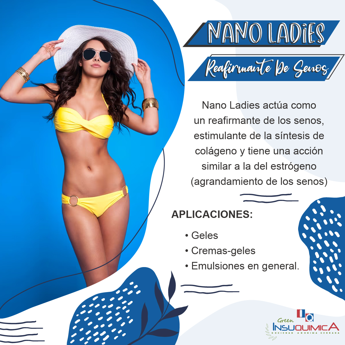 NANO LADIES – REAFIRMANTE DE SENOS – NANOVETORES, Nano Ladies es un ingrediente activo a base de aceite esencial de hinojo dulce encapsulado en partículas biopoliméricas con disparador de liberación enzimática y con un diámetro de partícula superior a 200 nm. La encapsulación de la mezcla a través de la Tecnología Nanovetores permite la estabilización de componentes extremadamente sensibles y complejos para ser formulados en su forma libre, también le da a los activos un aumento en la permeación de la piel, un aumento en lo sensorial en el producto final, y tiene una alta hidratación como multifuncionalidad., ya que actúan sobre la reposición de lípidos y previenen la pérdida de agua transepidérmica.