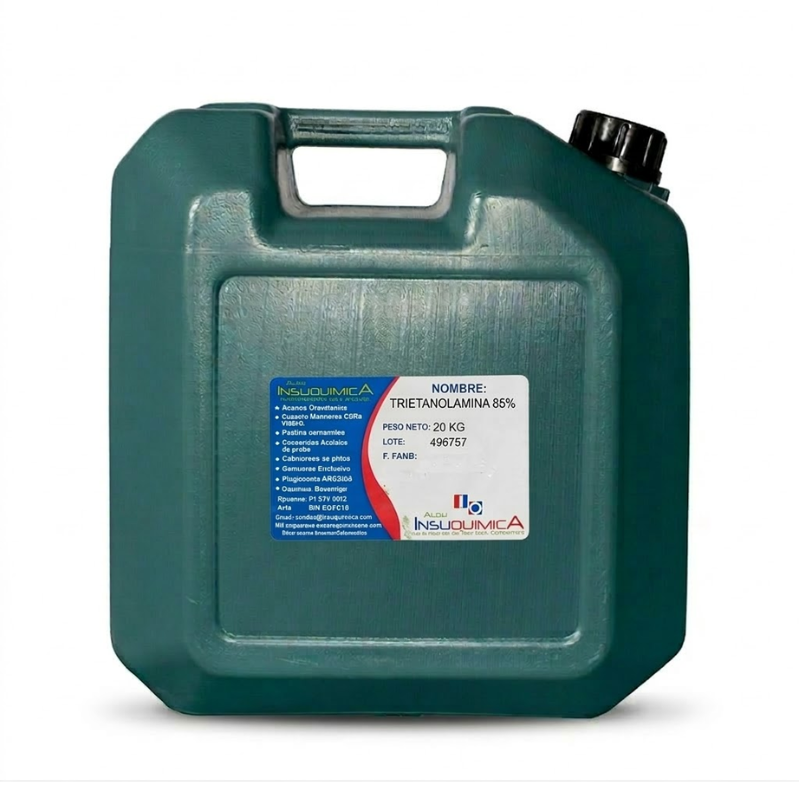 La Trietanolamina al 85% (también conocida como TEA 85%) es un compuesto orgánico soluble en agua. Es muy usado en industrias como la cosmética, farmacéutica, limpieza y otros sectores industriales.